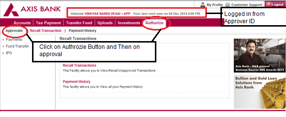 5.1. The Customer shall, at its own risk and consequences, access the Services by following the Security Procedure prescribed by Axis Bank from time to time, including use of (i) user-ID and password(s) (ii) One touch devices for accessing Corporate Internet Banking services. In addition, Axis Bank may advise the Customer to adopt such other Security Procedure and means of authentication as Axis Bank may require, and the Customer agrees to abide by such security procedure.