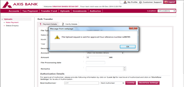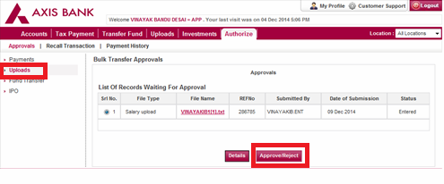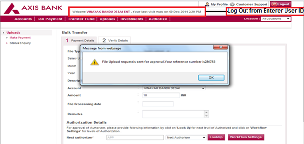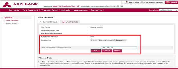 Customers can register their Payee and initiate the single payments to the registered Payee on Corporate Internet Banking through NEFT, RTGS, IMPS and Direct Credit. Customers can also initiate payments within their own linked accounts. Transfer fund to your Own Accounts, Other Axis Bank Accounts or Other Bank Accounts seamlessly.