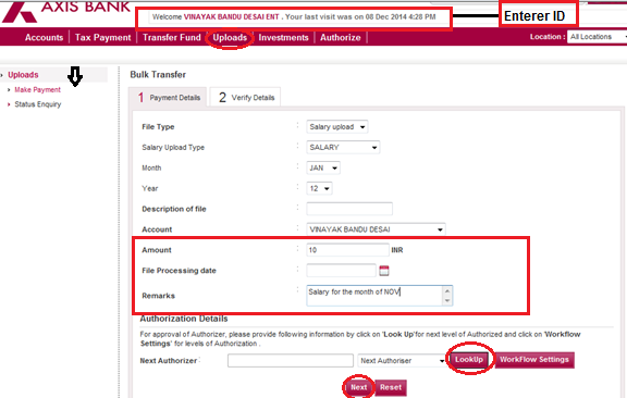 For example, Surya working for Vamshi Auto Pvt. Ltd. will use Corporate ID VAMAUT and Login ID SURYA to login.