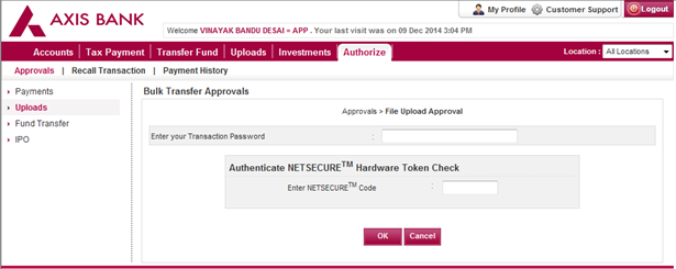 5.4. Customers will mandatorily require to use this 2 FA while accessing or approving of transactions and requests in Internet Banking channel.